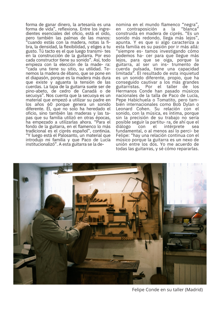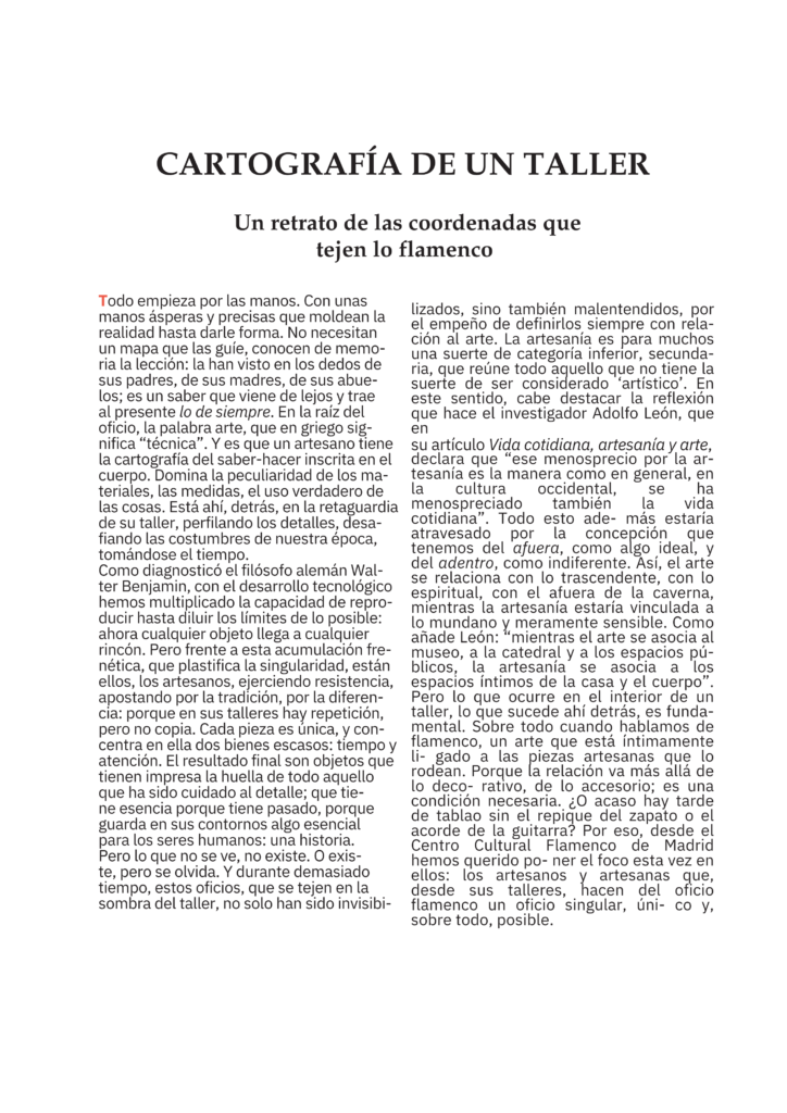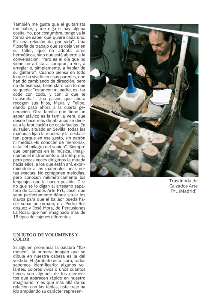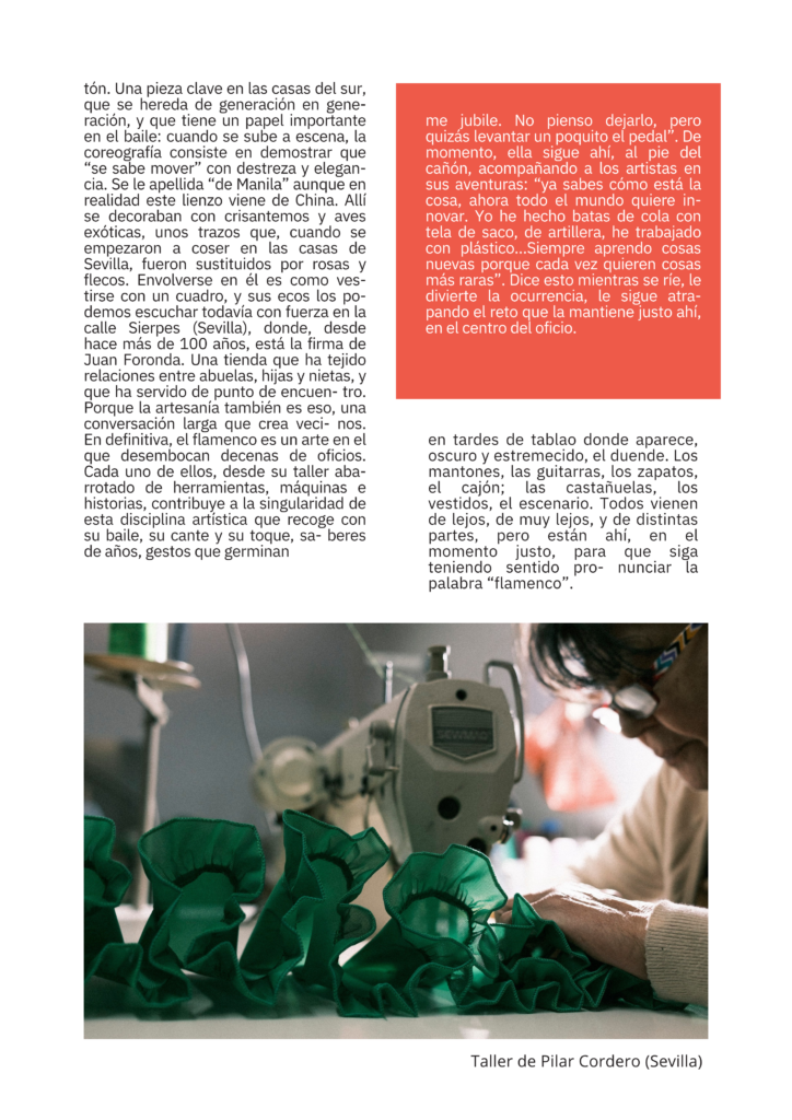 Desde Centro Cultural Flamenco Madrid queremos dar visibilidad a todos los gremios de artesanos que rodean a este arte Patrimonio de la Humanidad. Muchas veces el trabajo de estos grandes y pequeños artistas pasan desapercibido, pero sin su esfuerzo cotidiano nosotros no podríamos realizar nuestro arte.